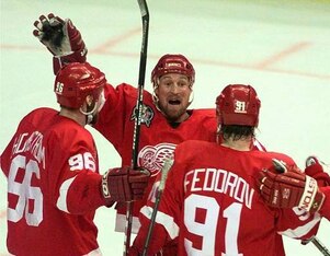 Nicknamed "Brownov" for how well he played on a line with Russian teammates, Brown had four goals and two assists in nine playoff games in 1998 as the Red Wings swept Washington to win their second straight Cup, the last NHL team to date to achieve a repeat championship.